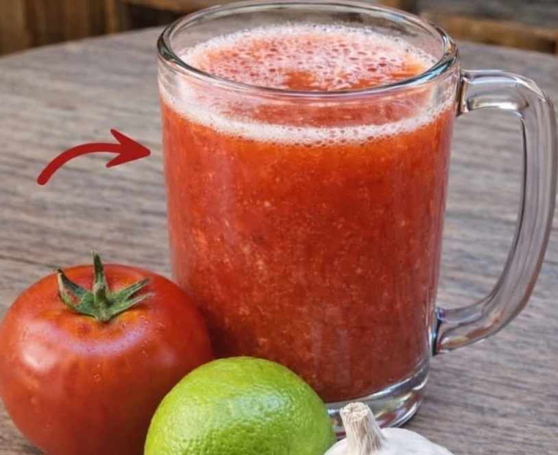 Natural Recipe)🧾 Ingredients (1 glass)2 ripe tomatoes1/2 to 1 lime (juiced)1 small garlic clove1/2 cup water (optional, for smoother texture)A pinch of salt (optional)A pinch of black pepper or ginger (optional)🥣 PreparationWash the tomatoes well and cut them into pieces.Peel the garlic clove.Add tomatoes, garlic, lime juice, and water to a blender.Blend until smooth.Strain if you prefer a lighter juice (optional).Drink fresh.⏰ How to UseDrink once a day, preferably in the morning on an empty stomachUse for 3–5 days, then take a break🌿 Why people drink itTomatoes are rich in lycopene and antioxidantsLime supports digestion and hydrationGarlic is known for immune and circulation support⚠️ This is a wellness drink, not a medicine.If you have kidney problems, stomach sensitivity, or take medication, avoid garlic on an empty stomach or consult a professional.